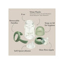 Includes both slow flow nipple and leakproof and spill-proof soft sippy spout