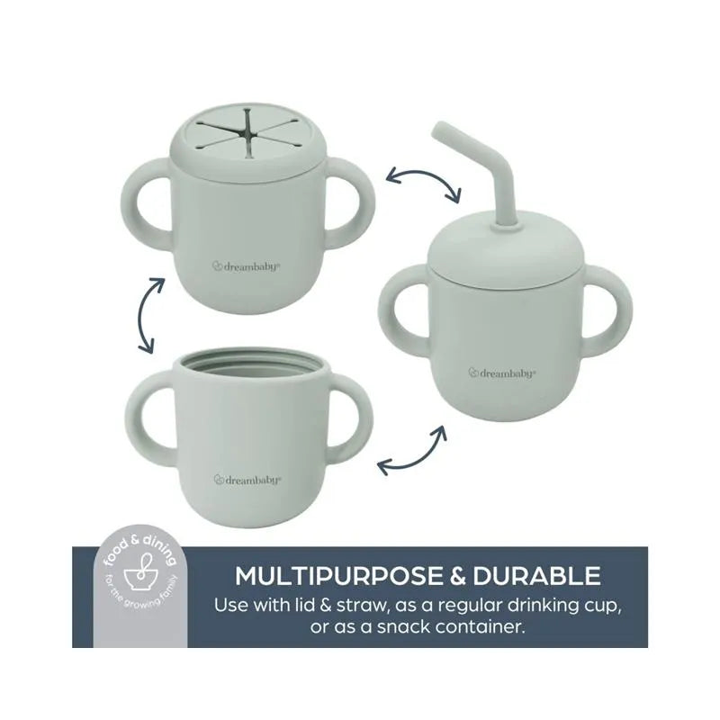 Crafted from high-quality, thick and robust food-grade silicone, this cup is a chameleon in the world of children's utensils. It seamlessly adapts to your child’s ever-evolving needs and whims. One moment, it's a sippy cup. Next, it's a snack holder. And just when they think they've figured it out, it becomes a regular drinking cup, ready for those grown-up sips.