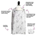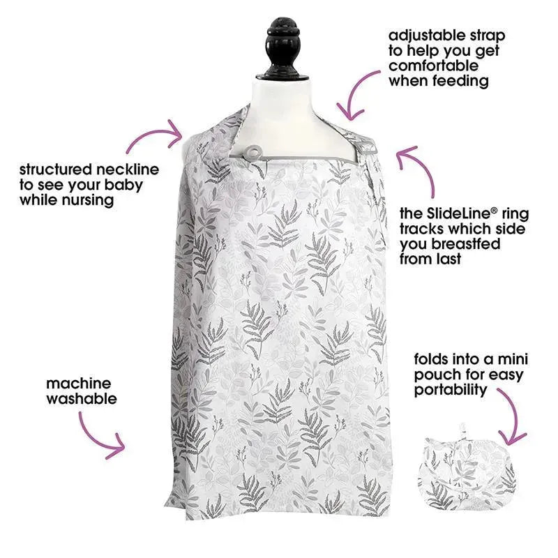 The Boppy Nursing Cover provides full coverage while breastfeeding. Whether you are looking for privacy while feeding or need to remove distractions for baby, you are covered. This breastfeeding cover has a structured neckline so you can easily see baby while nursing. The neckline includes a unique SlideLine ring that slides from side to side to keep track of which side you nursed or pumped from last. The structured neckline is also great for easy pumping. It allows you to better see what you are doing to correctly place the flange and help reduce discomfort. The wide apron style design and adjustable neckline works well with all body types and provides full coverage while nursing. Stay cool on warm days with the open back while shielding baby from the sun. Keep baby cozy and block the wind on you and baby on cooler days. The nursing cover easily folds into the integrated pouch to stow small and easily toss in your diaper bag, making travel a breeze.