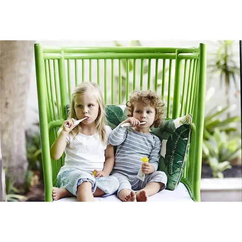 Soft silicone bristles Gentle on tiny teeth and sensitive gums 100% Medical/Food Grade Silicone BPA & PVC Free Directions: Wash thoroughly before and after use. Apply a small amount of Jack N' Jill Natural Toothpaste to brush. Gently slide brush over teeth with a forward/backward motion. We know these look really weird, but they really work. Because they 'hug' the teeth, kids find them really easy to use, even on their own. Use only under adult supervision. Do Not Chew! Safe For Infants!