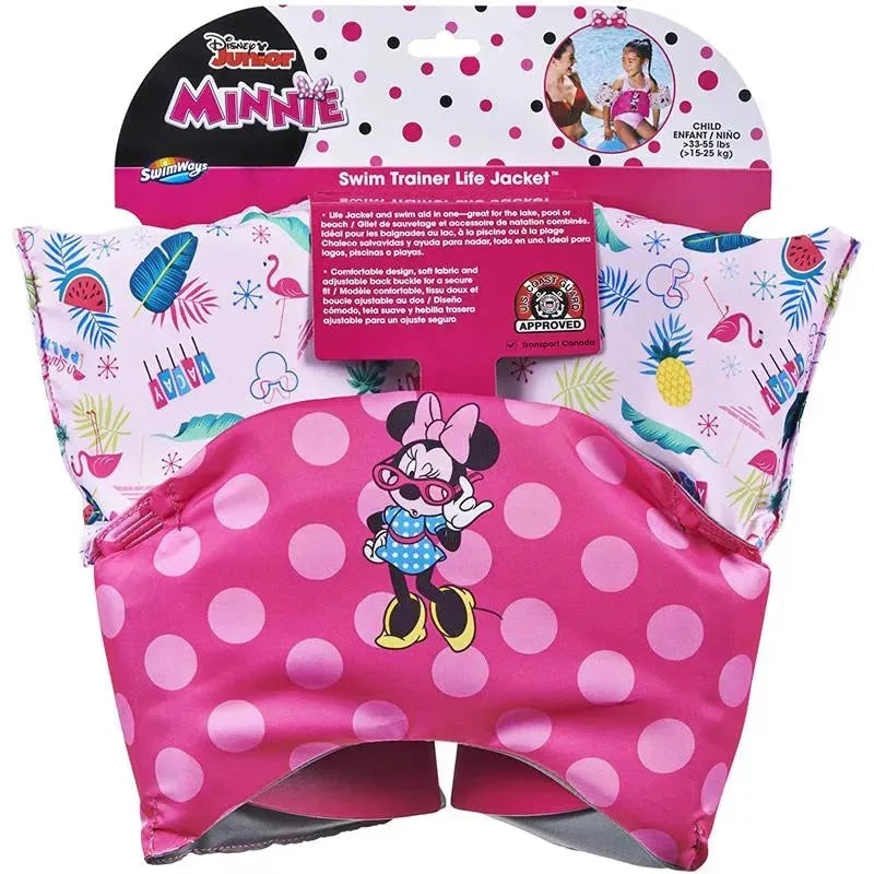 MINNIE MOUSE LEARN-TO-SWIM LIFE JACKET: Features a Minnie Mouse theme with a bright pink polka dot design for a magical day at the pool