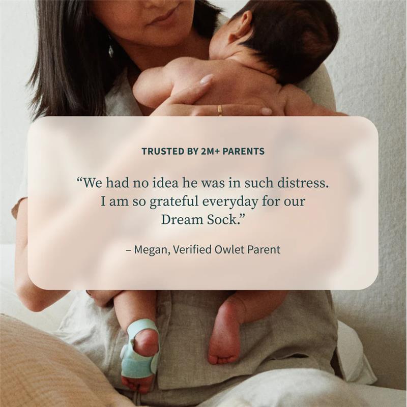 Better sleep for your baby. Better rest for you. Professional-level monitoring and actionable insights that help you sleep well, understand patterns, and feel confident in your baby’s wellness - not just when something happens. Dream Sock goes beyond traditional monitors to give you the wellness and sleep insights you really need. Medical-grade monitoring gives you real-time visibility into your baby’s wellness, so you know, not guess. Track live pulse rate, oxygen levels, sleep and trends overtime so you can understand sleep, wellness trends, and daily rhythms.