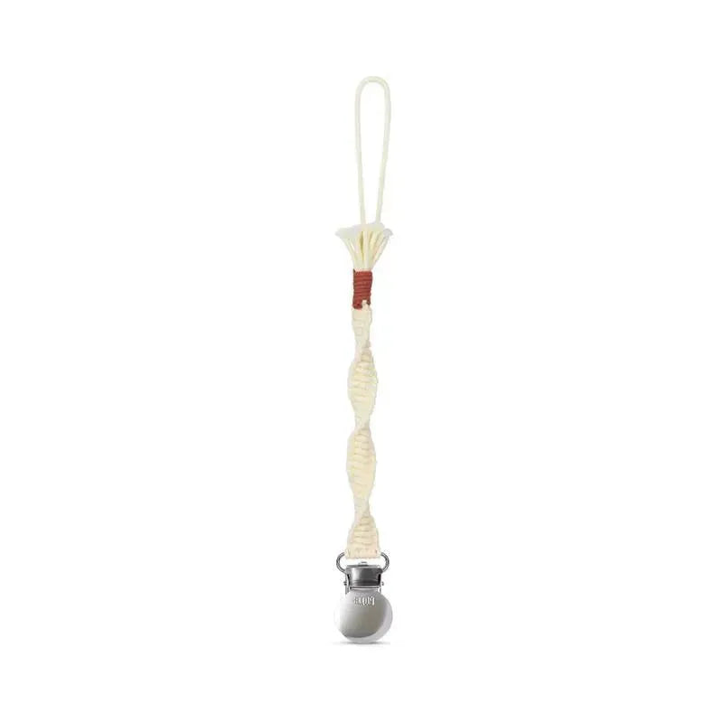 Our Macrame Pacifier Clips are crafted from a safe and durable material, featuring wooden clip teeth that securely hold onto baby's clothes without causing any damage. The clips are not only free from BPA, Phthalate, Latex, and Lead but are also designed with the safety of teething babies in mind. The wooden clip teeth provide a gentle yet secure grip, ensuring the baby's comfort during the teething phase.