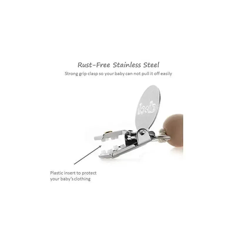 This is not a toy. Please do not leave children unattended when using the pacifier clip. Please inspect the clip before using to make sure none of the pieces have come loose. Buyer assumes full responsibility of using this pacifier clip.