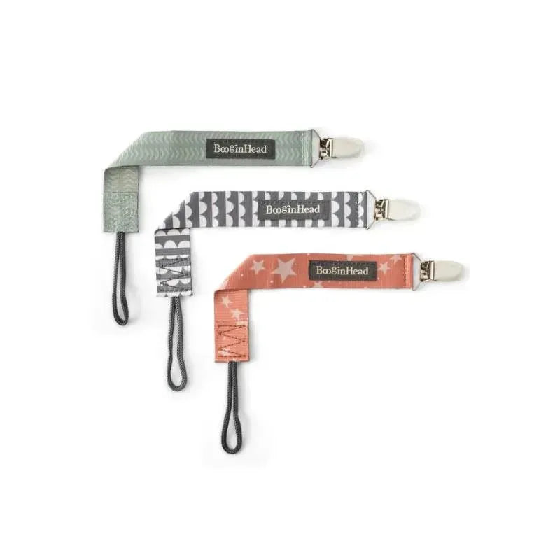 Booginhead 3-Pack Pacifier Clips, Sage, Scallops, Sienna