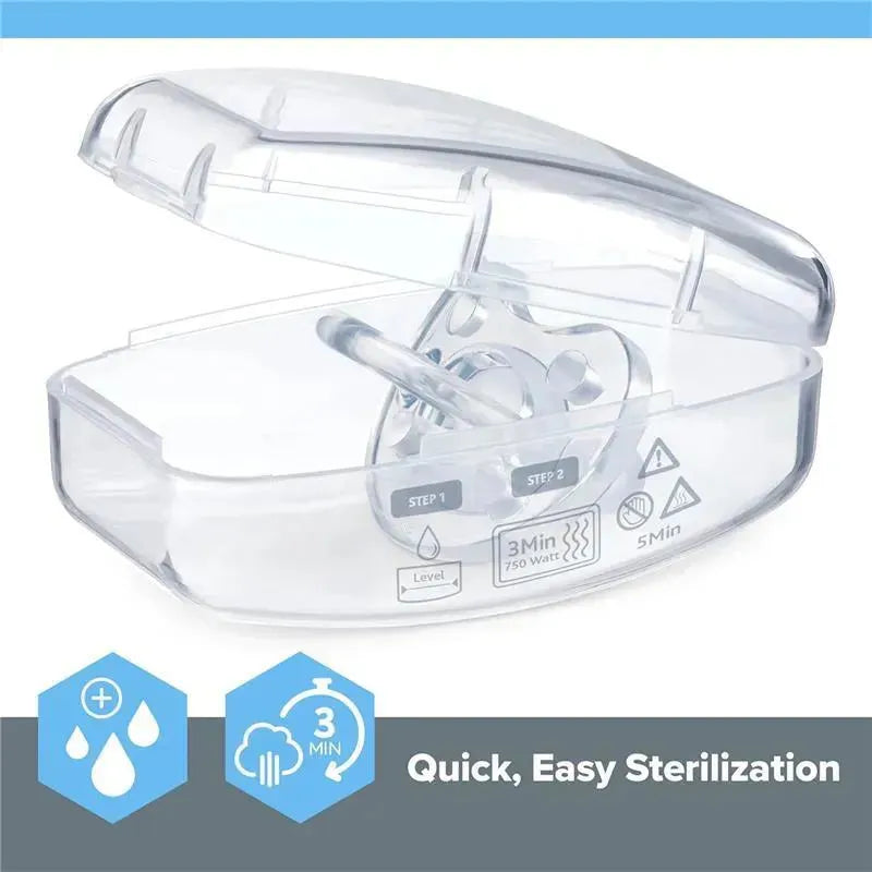Available in three sizes: 0-6m, 6-16m, and 16-24m. Reusable, sterilizing/carry case included.