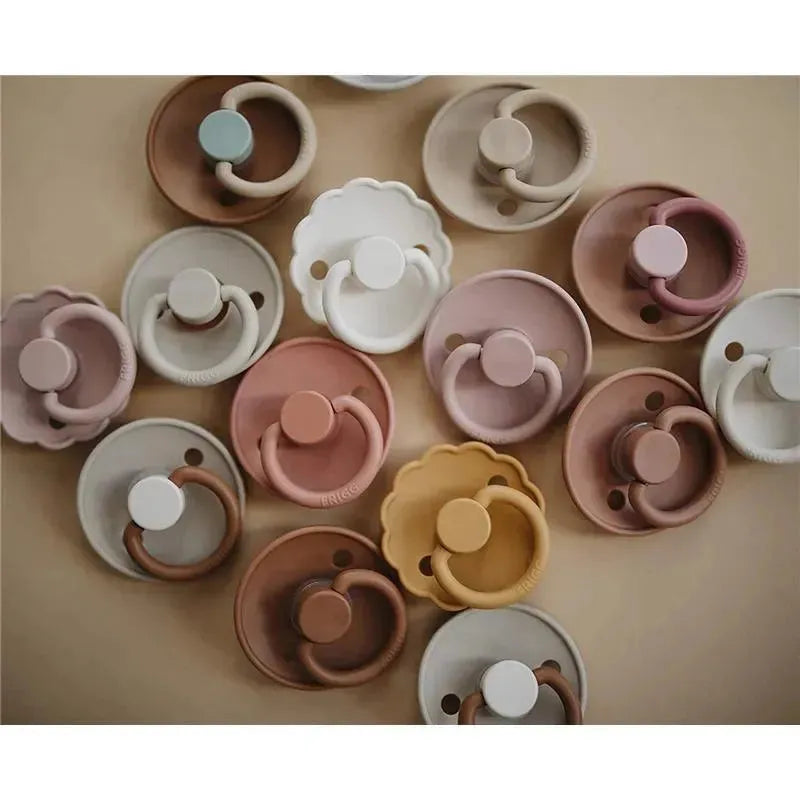 The FRIGG line of daisy natural latex pacifiers has been thoughtfully designed for your baby's comfort. The outward curve keeps the pacifier off their delicate skin, while features like air holes and a security handle ensure your baby stays safe. Available in a range of soft colors, FRIGG pacifiers make a beautiful addition to your collection of baby essentials.