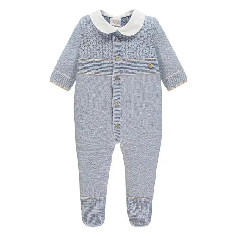 Paz Rodriguez - Baby Boy Knit Newborn Romper Soño, Blue Fog/Linen