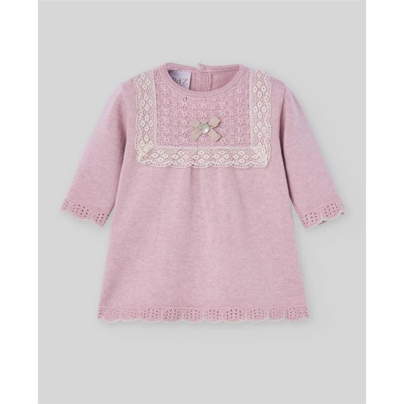 Paz Rodriguez - Knit Newborn Dress Pascua, Powder Pink/Light Brown