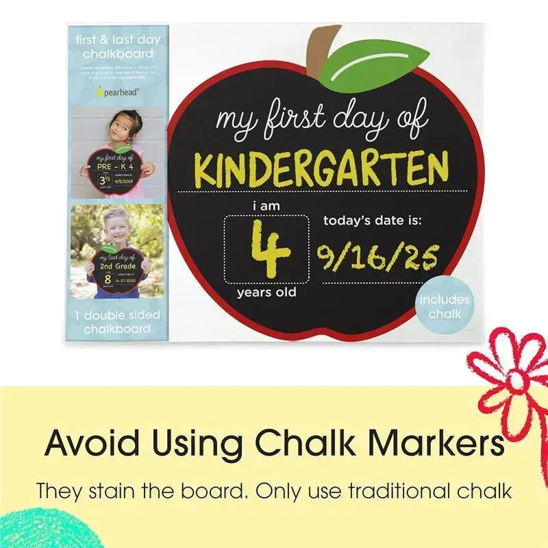 Complete Photo Prop Set: This set includes one double-sided apple-shaped chalkboard and yellow chalk, ensuring you have everything you need to start capturing memories right away. The chalkboard dimensions are 10.5” W x 10.25” H. Note: Avoid using chalk markers, as they stain the board. Only use traditional chalk.