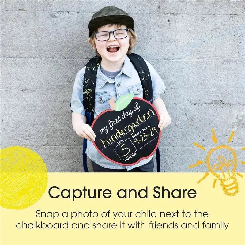 Playful and Vibrant Design: With its fun apple shape and colorful details, this chalkboard adds a playful touch to your child's school pictures. It stands out in photo albums, making each milestone picture special and unique.