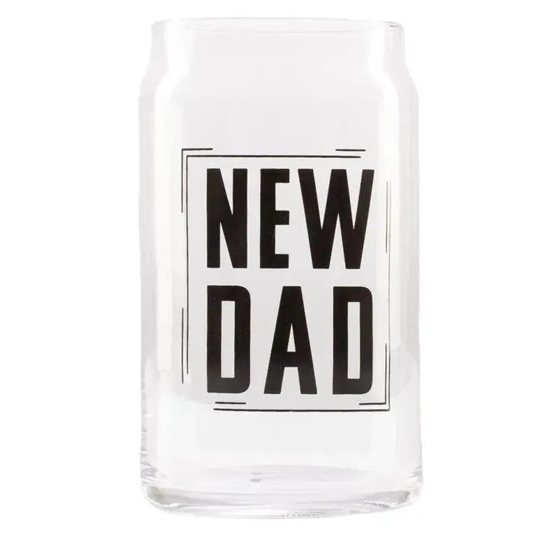“New Dad” printed on the front of the glass in black