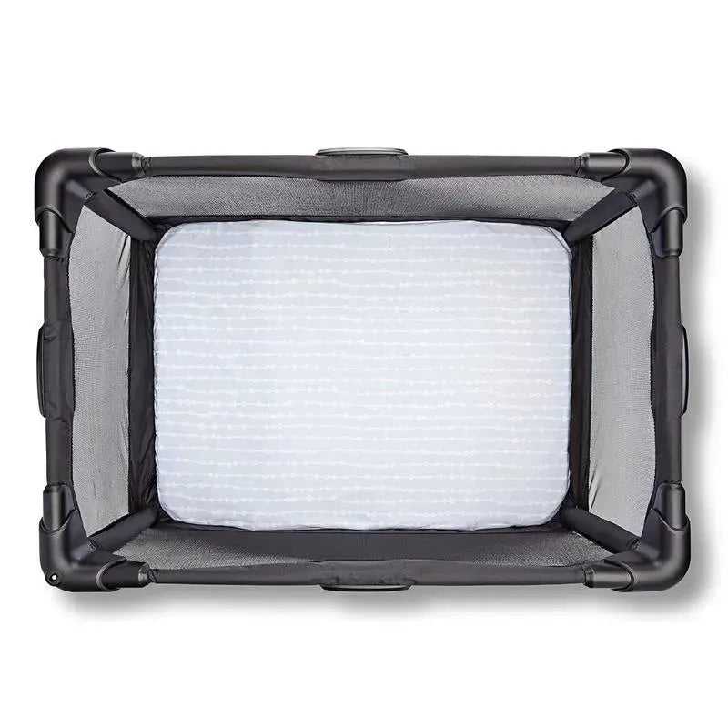 The 4moms® breeze® waterproof playard sheet Geometric Grey provides a comfortable surface for your child to rest and play. The sheet surface is a soft, plush, patterned fabric. Waterproof sheet provides added protection to the water-resistant playard mattress.