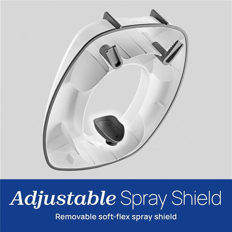 ADJUSTABLE SPRAY SHIELD – Toddler toilet topper features a soft-flex spray shield that rotates up for boys, down for girls and is removable for cleaning.
