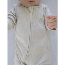 Pure Baby - Baby Neutral Rib Long Sleeve Henley Bodysuit, Biscuit Melange