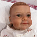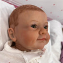This beautiful white baby doll reborn has painted hair and open green eyes.