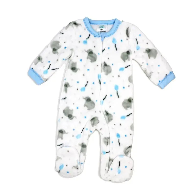 Rose Textile - Baby Boys Printed Fleece Sleeper Blue Elephant