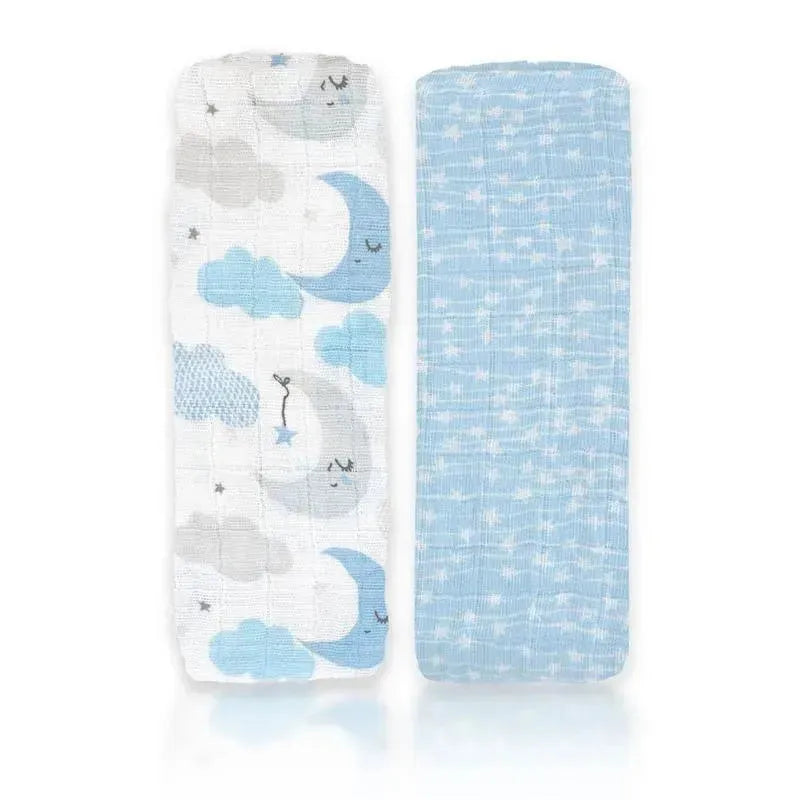 Rose Textiles - 2 Pack Muslin Swaddle Blankets, Blue Sweet Dream