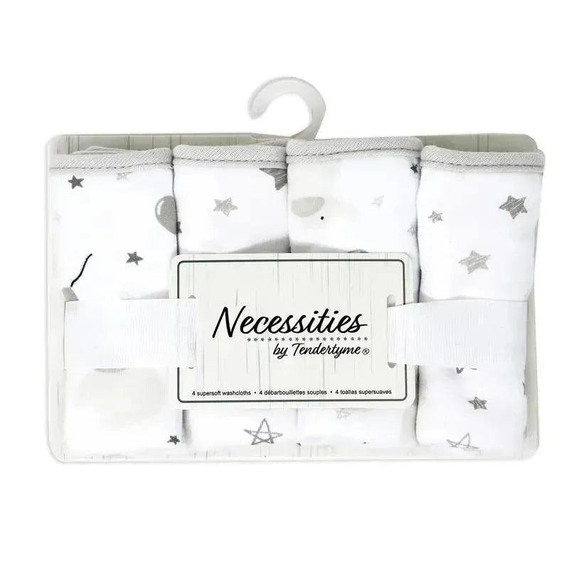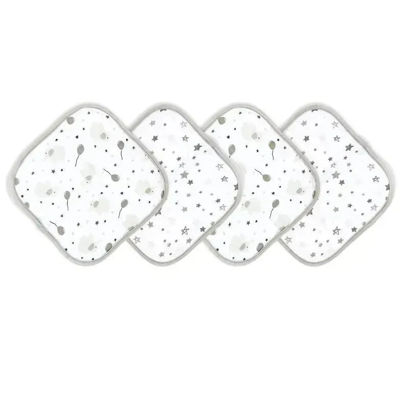 Rose Textiles - 4 Pc Washcloth Set, Elephant & Balloon Grey