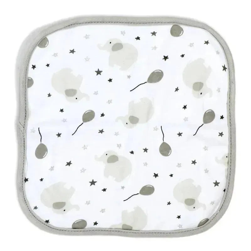 Pamper your little one with our Elephant & Balloon Washcloth 4 pc Set in Grey. Crafted from 100% cotton, each washcloth measures 9” x 9”, offering gentle care for sensitive skin. Adorned with charming elephant and balloon designs, these washcloths add a delightful touch to bath time. Perfect for daily use, they combine softness with durability, making them essential for any baby’s bath routine. Treat your baby to comfort and style with this adorable washcloth set.
