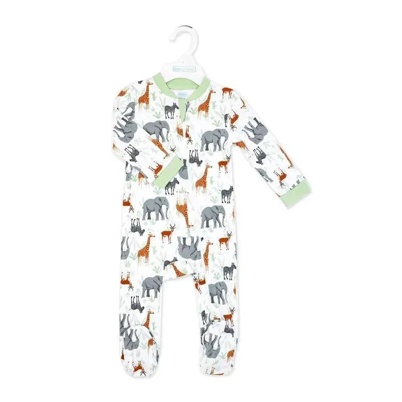 Explore the wild side with our Boys Interlock Coverall in Safari theme, crafted from 100% cotton for softness and comfort. This charming outfit features playful safari prints, perfect for your little explorer's adventures. The interlock fabric ensures durability and ease of movement, ideal for both playtime and naptime. Embrace the spirit of adventure with this stylish and practical coverall, designed to keep your boy cozy and looking adorable.
