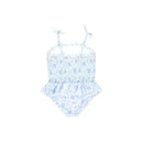 Dive into summer fun with this girls' Peplum Smocked Bodice One Piece Swimsuit from RuffleButts. This chic and comfortable UPF 50+ swimsuit features a flattering peplum design and a smocked bodice, providing the perfect blend of style and playfulness for your little pool time princess. This swimsuit is sure to be her favorite this upcoming season!