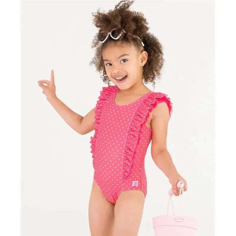 Rufflebutts - Hot Pink Heart Waterfall One Piece, Pink