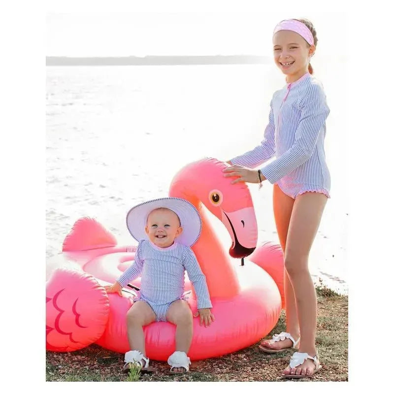 Adorable long sleeves striped Periwinkle Seersucker One Piece Rash Guard. With high quality UPF 50+ sun protected fabric, it will ensure a lot of fun at the beach or at the pool.
