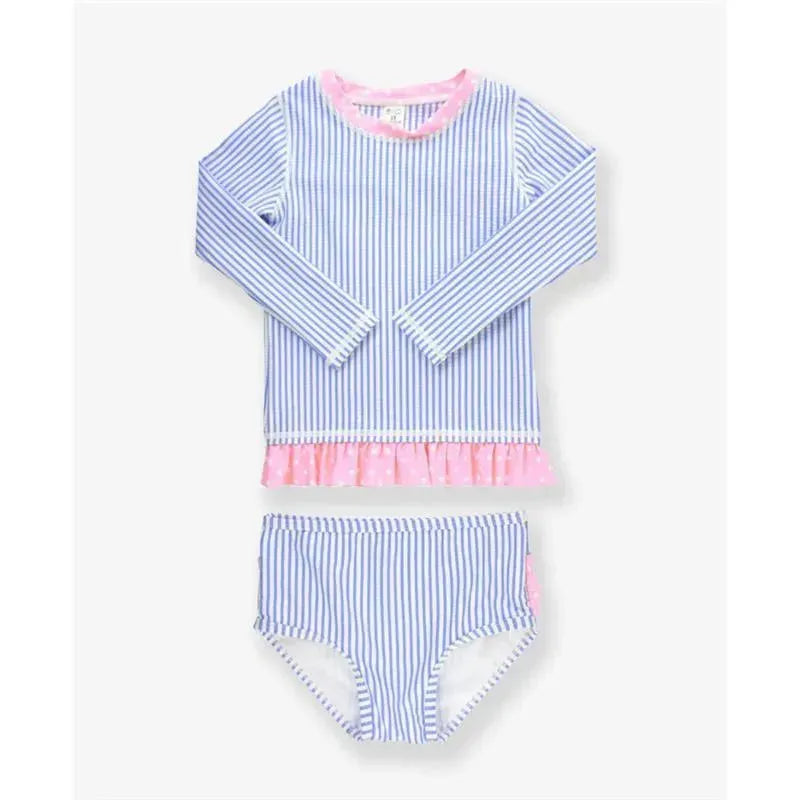 Rufflebutts - Periwinkle Blue Seersucker Rash Guard Bikini