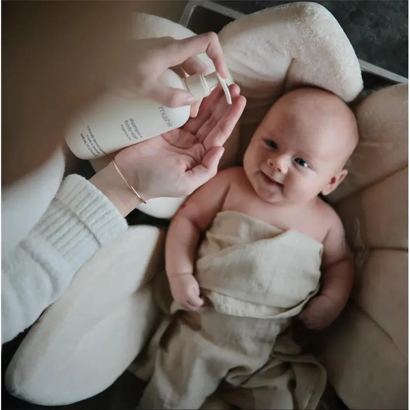 Mushie Shampoo & Body Wash is uniquely developed for the delicate skin and scalps of babies and children. Our gentle formula prevents dehydration, softens and moisturizes your baby's skin.
