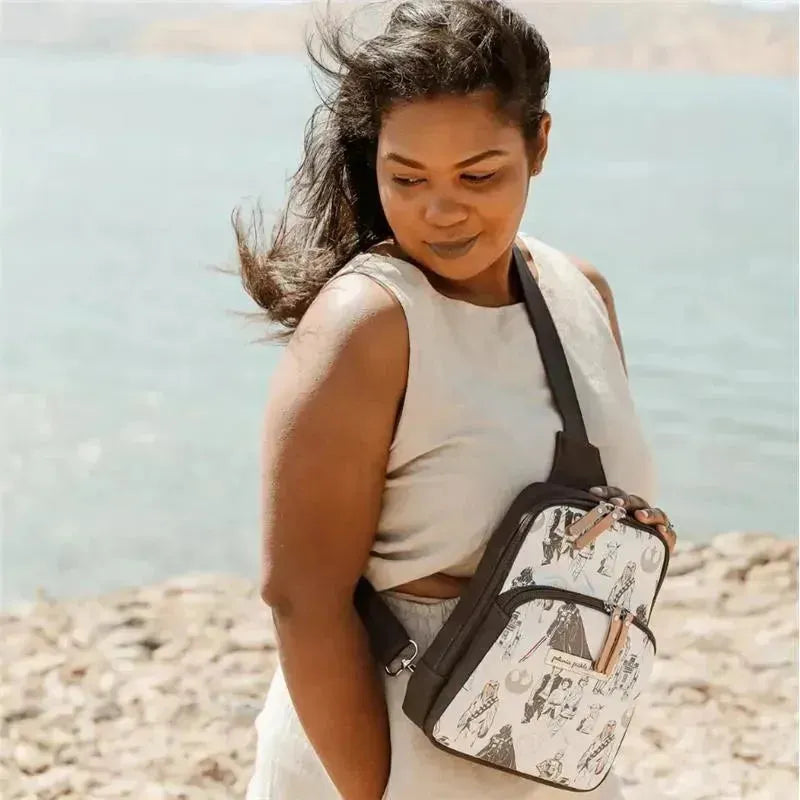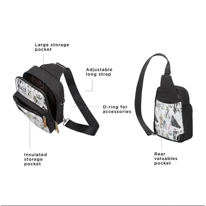 This bag is engineered with a water-resistant interior and adjustable straps, allowing you to custom-fit the sling for crossbody wear from either left-to-right or right-to-left. It measures a compact 7.9”W x 11”H x 3.9”D, with an adjustable strap length between 27.5" - 52". Despite weighing only 0.81 lbs, it boasts an impressive capacity of 5.6 liters.