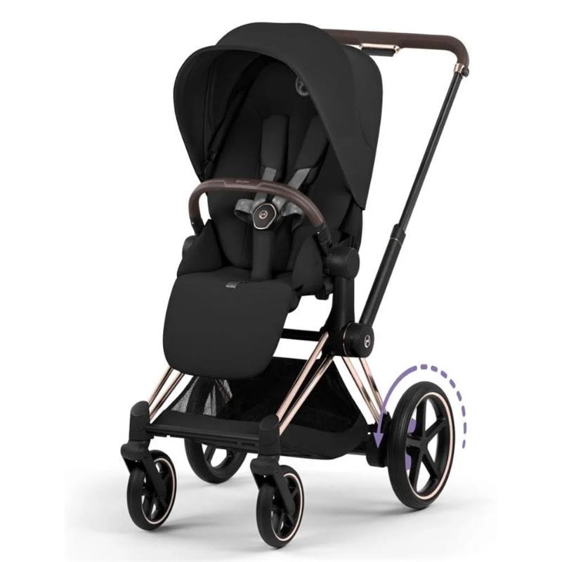 Smart technology meets luxurious design to create the e-Priam stroller, giving parents e-powered freedom and flexibility from day one. Superior wheels and suspension keep every journey on uneven surfaces smooth, turning cobblestones, park paths, and sandy strolls into effortless travel.