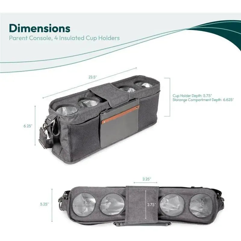 Wonderfold - Parent Console With 4 Insulated Cup Holders, Black