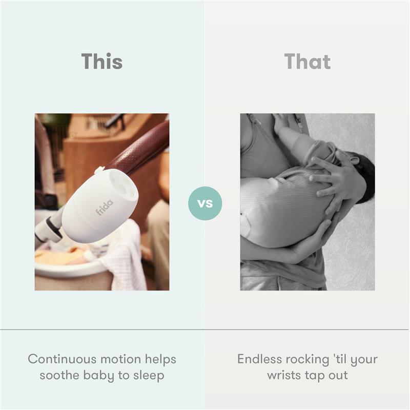 Transform any stroller or crib into a soothing sanctuary with the Frida Baby Hands-Free Rocker. This innovative baby aid features five levels of whisper-quiet vibration that gently lulls your little one, freeing your hands for other tasks. The versatile mounting system securely attaches to most strollers and cribs, making it perfect for use at home or on the go. Designed with convenience in mind, the water-resistant rocker runs for up to 8 hours on a single charge and includes a 40-minute auto-shutoff feature for peace of mind. Safe for newborns and babies of all ages, this rechargeable stroller accessory provides continuous, gentle motion that helps soothe your baby while giving parents a much-needed break from manual rocking.