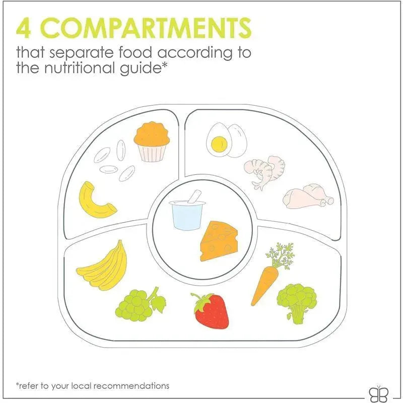 BALANCED MEALS – The Yümi features four divided sections that are appropriately sized portion compartments that correspond to the national food guide, ensuring your child gets balanced meals.