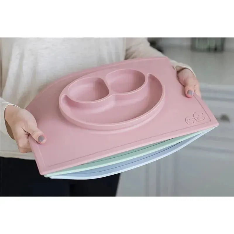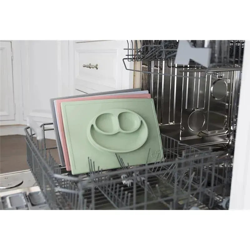 The Happy Mat is an all-in-one placemat + plate that captures your kid's mess. Another bonus? It suctions directly to the table, making it nearly impossible for tiny hands to tip over. Click here to see the suction function for yourself. The Happy Mat is made from 100% food-grade silicone that is BPA, BPS, PVC, latex and phthalate free. Designed for infants / toddlers 6+ months.