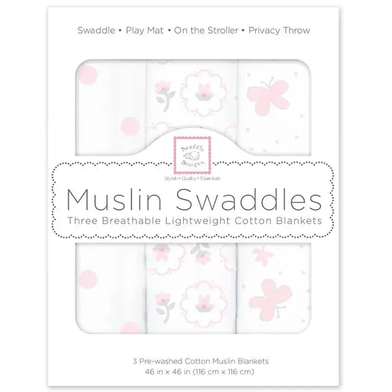 Swaddle Designs - 3Pk Muslin Swaddle Blankets, Butterflies & Posies
