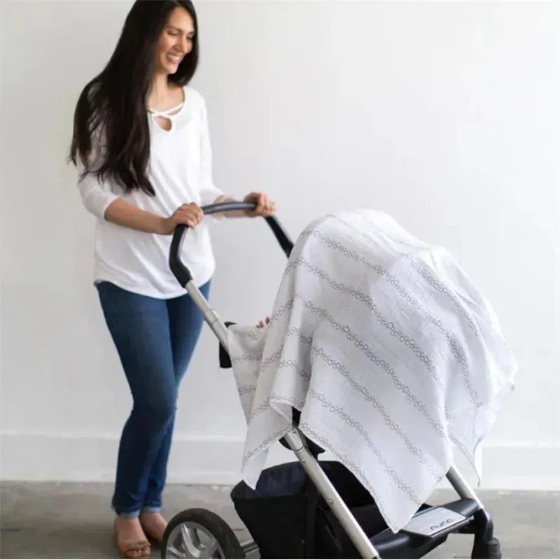 A set of 3 breathable, lightweight and whisper soft marquisette cotton multi-use swaddle blankets. The generous size and square shape make it easy to swaddle, and it makes a great sunshield, use on the stroller or as a playmat for tummy time or a privacy throw for feeding baby.