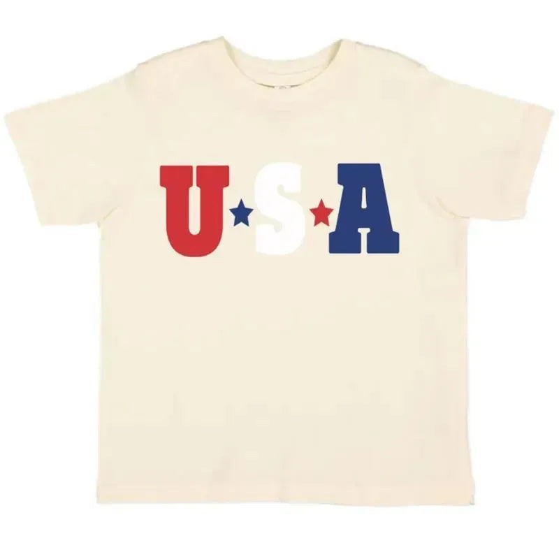 The USA Multi Short Sleeve T-Shirt is a fun and festive t-shirt for kids celebrating the 4th of July or to show patriotic spirit any day!