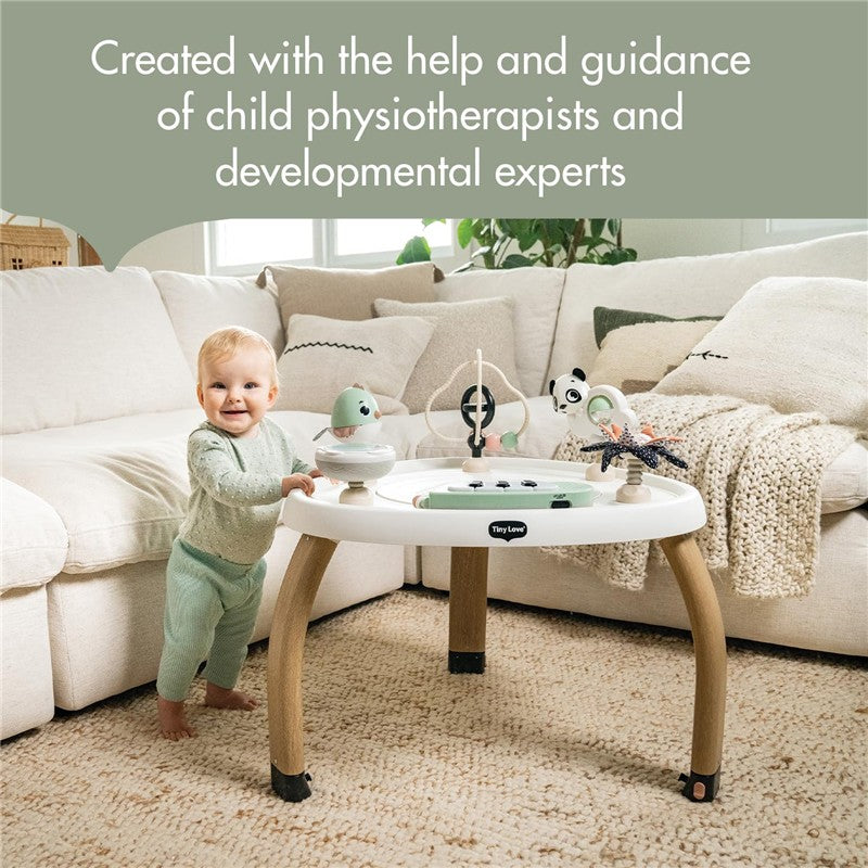 The Activity Center evolves with your child, with 5 versatile modes of use. It starts as an inspiring activity center with a 360-degree rotating seat and interchangeable toys, and transitions into a dynamic play table and stool for toddlers.