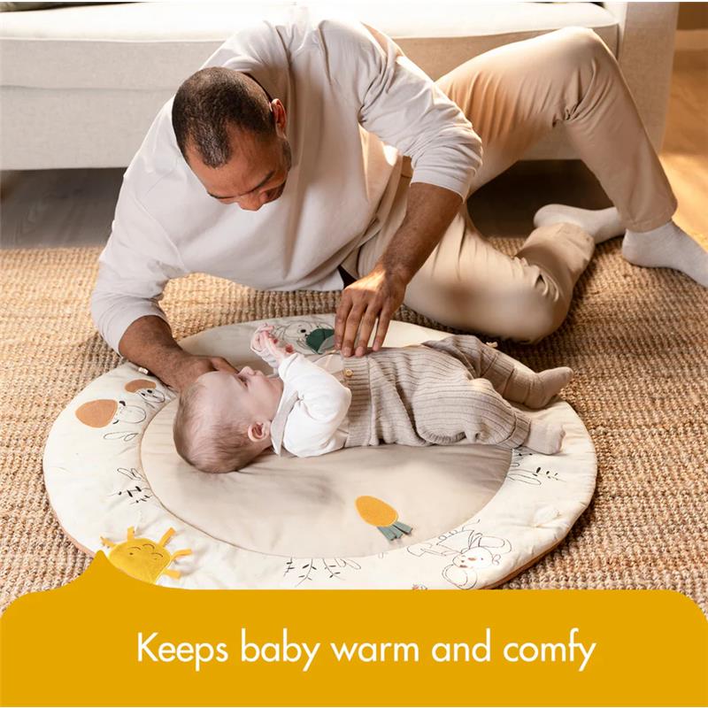 Natural sounds blend seamlessly with visual and tactile elements, creating a rich tapestry that helps your little one hone essential skills. The play mat's plush padding ensures a warm, comfy space for your baby – a safe haven for them to explore the world around them, or a comfortable spot for older babies to sit and play after removing the wooden arch.