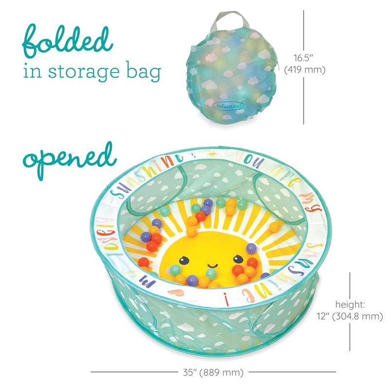 But the Infantino Pop-up Ball Pit isn't just about fun; it's also a tool for learning and development. As your child dives into this sea of brightly colored balls, they're also developing critical motor skills. Each playful toss and catch, each gleeful dive and scramble, is a step towards their physical and cognitive growth.