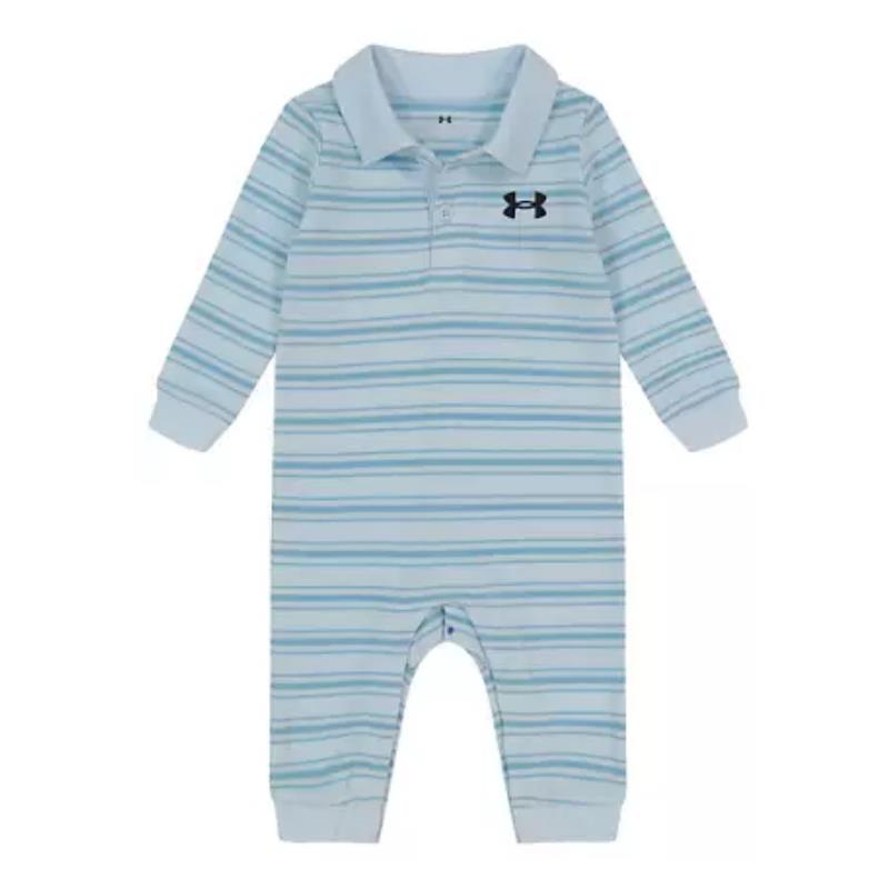 Cute stripes and a polo-inspired design make this Under Armour® coverall perfect for your little one.