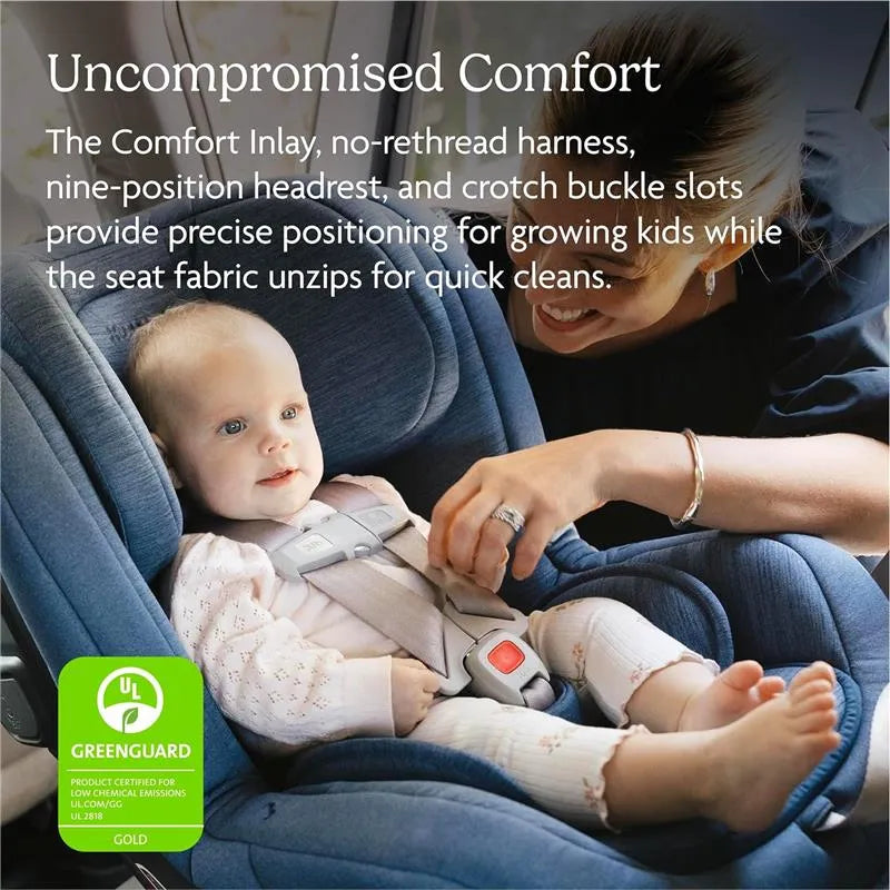The UPPAbaby Rove Convertible Car Seat combines cutting-edge safety features with luxurious comfort and style. GREENGUARD?Gold Certified fabrics, available in DualTech™ and PureTech™ options, are hypoallergenic, naturally cooling, and free from harmful chemicals, supporting healthier air quality. The seat offers five recline positions, a no-rethread harness, and a nine-position adjustable headrest for a perfect fit as the child grows. Lightweight and FAA-approved, with additional convenience features like a removable, dishwasher-safe cup holder, the Rove is designed to provide peace of mind and ease for modern families.