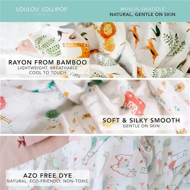Our muslin swaddle blankets are made with ultra-soft, breathable bamboo and cotton muslin fabric that is gentle on baby’s delicate skin while still managing to be super durable.