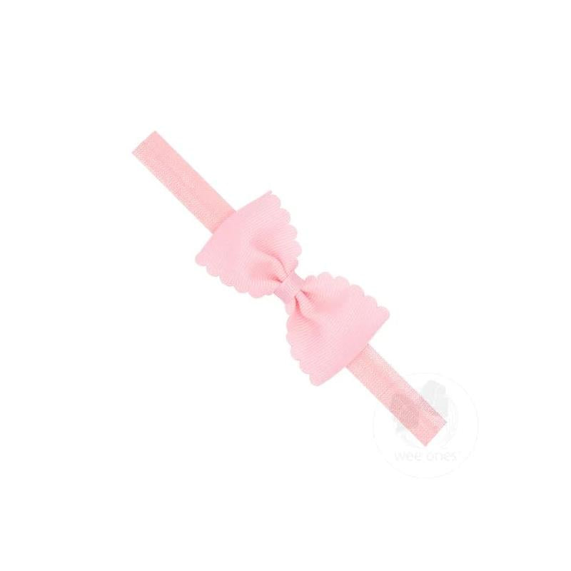 Wee Ones - Baby Girls' Grosgrain Scalloped Edge Hair Bowtie on a Elastic Band Light Pink