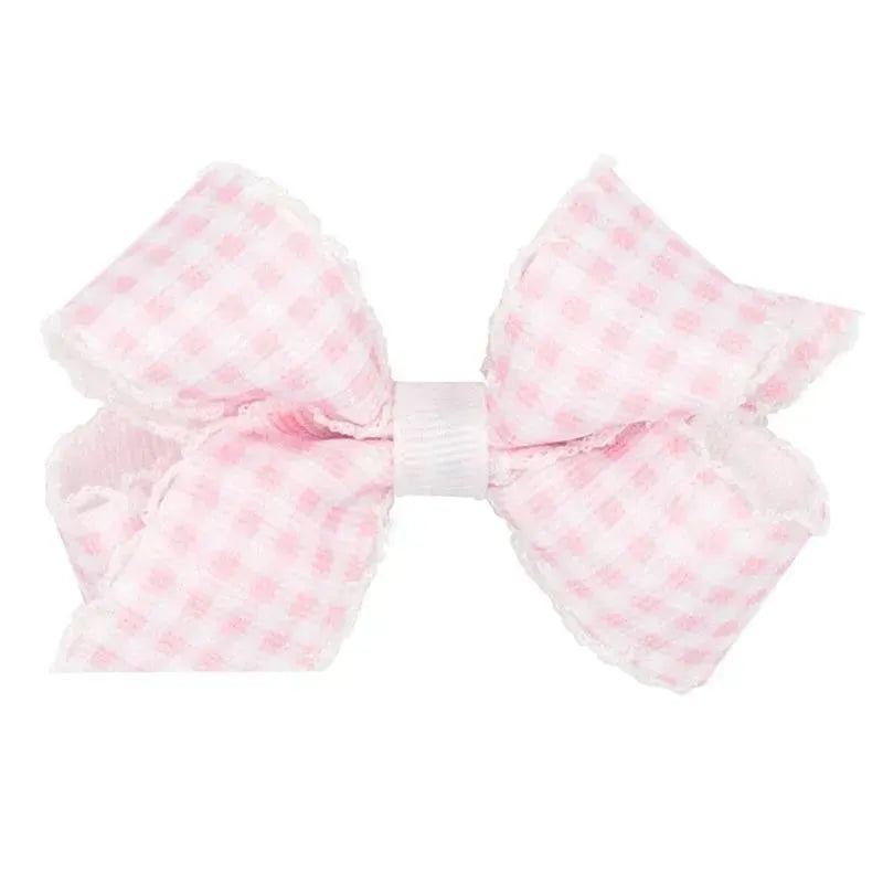 Wee Ones - Mini Gingham Print With Moonstitch Trimmed Bow, Light Pink