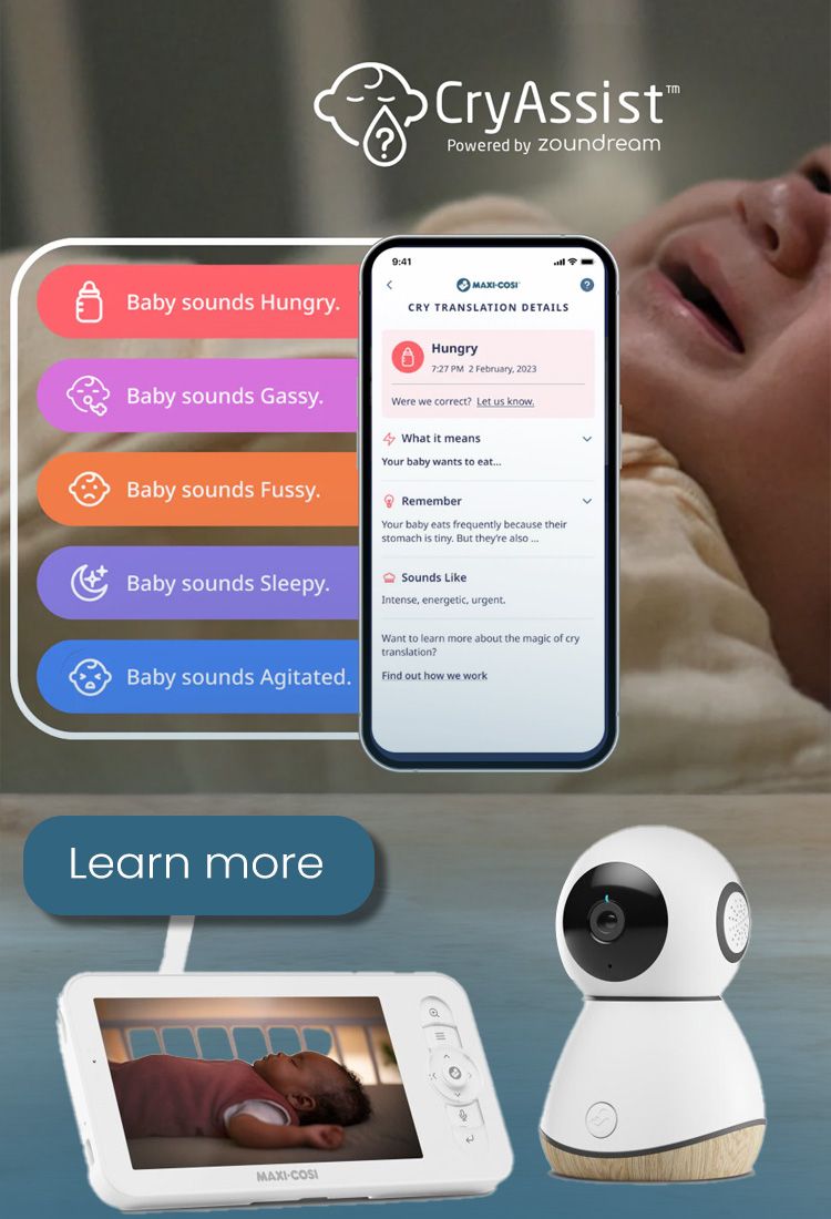 CryAssist™ AI Technology – Detects and translates your baby’s cries into possible needs (hunger, discomfort, sleepiness, and more).