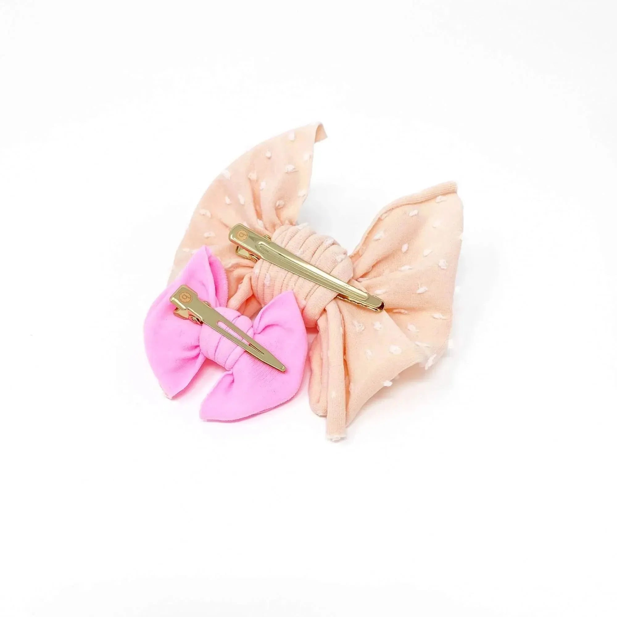 A pack of TWO sweet bows because everything is better in pairs! BABY FAB® CLIPS are the perfect size to transition from headbands to clips. Dainty and light to stay put in fine baby hair.
