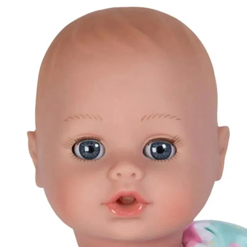 Splish – Splash! Adora’s BathTime Babies are the perfect 13” doll for the bath, pool, beach, lake or any water fun! These fun water baby dolls have a soft and cuddly body and fresh baby powder scented vinyl. BathTime Baby Unicorn comes with their very own pink wash cloth and removable white unicorn themed bath robe that when taken off shows an ADORAbly cute blue swimsuit printed body with a unicorn on the front! From their tiny little noses to their cute belly buttons…they are absolutely adorable with a perfect blend of sweetness and love. This water toy has an exclusive QuickDri™ body that will dry in no time and will be ready to play again! With their sweet faces and adorable animal themed bathrobes, this water baby doll will provide hours of nurturing playtime fun. Your little one will want to bring them to bath time, every time! Best of all they are 100% Machine Washable, so after a trip to the playground, beach, park or pool, wash them, lay them flat to dry and they’ll be fresh and clean again! Ages 1 and up.